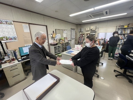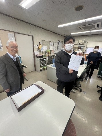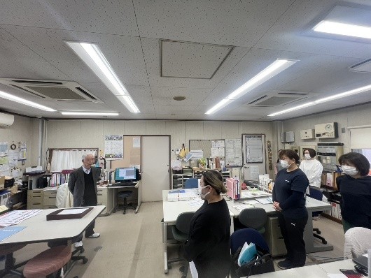 そして、みんなで館内に戻り、あらためて理事長から挨拶をいただき、辞令交付式が終了となりました。